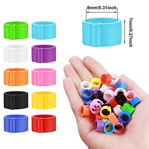 Multicolore: gli anelli delle gambe sono di colore chiaro, molto attraenti. Dimensioni: 8 * 7 mm / 0,31 * 0,27 pollici (diametro interno * altezza), 10 colori, 10 per colore, sufficienti per l'uso quotidiano. I piedini colorati facilitano l'identificazione dei propri piccioni.