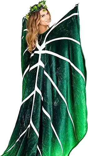 ZMURED Coperta a foglia, a forma di grande foglia verde, morbida flanella di peluche, design decorativo per gli amanti delle piante, letto e divano (150 x 200 cm)