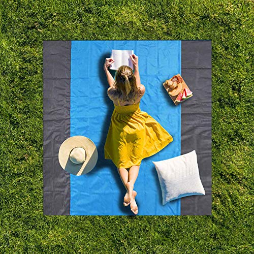 ZMZTec Coperta da picnic, spiaggia, telo da spiaggia, impermeabile, resistente alla sabbia, ad asciugatura rapida e compatta, per viaggi, campeggio, escursioni (210 x 210 cm)