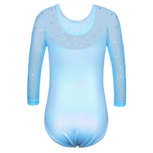 ZNYUNE - Body da ginnastica da ragazza, con maniche a 3/4, con strass, 203, blu, 10A