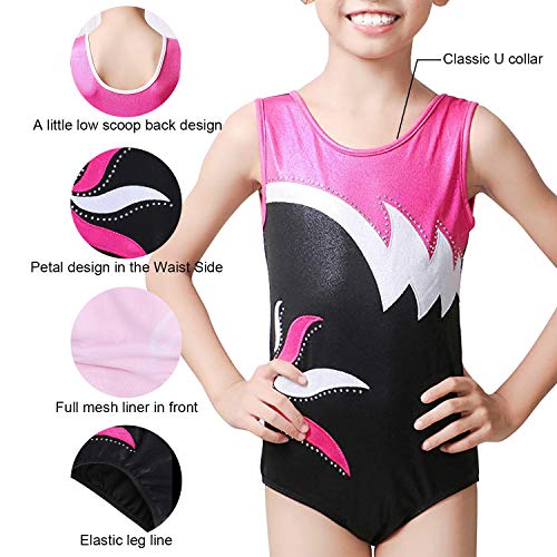 ZNYUNE Ragazza Tuta da Ginnastica Ginnastica Bambini Maglia Leotard Competizione Ginnastica Body Turn Body 3-14 Anni 182 BlackHotPink 12A