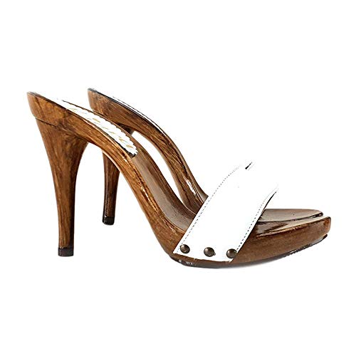 Zoccoli da Donna con Fascia in Pelle Bianca Nera Silver - KM7103-BNS (40 EU, Bianco)