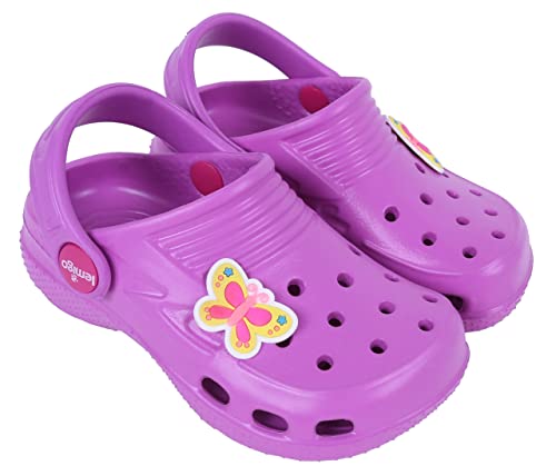 Zoccoli viola traspiranti per bambina con un emoticon farfalla, realizzati in gomma, EVA LEMIGO 31 EU / 12.5 UK