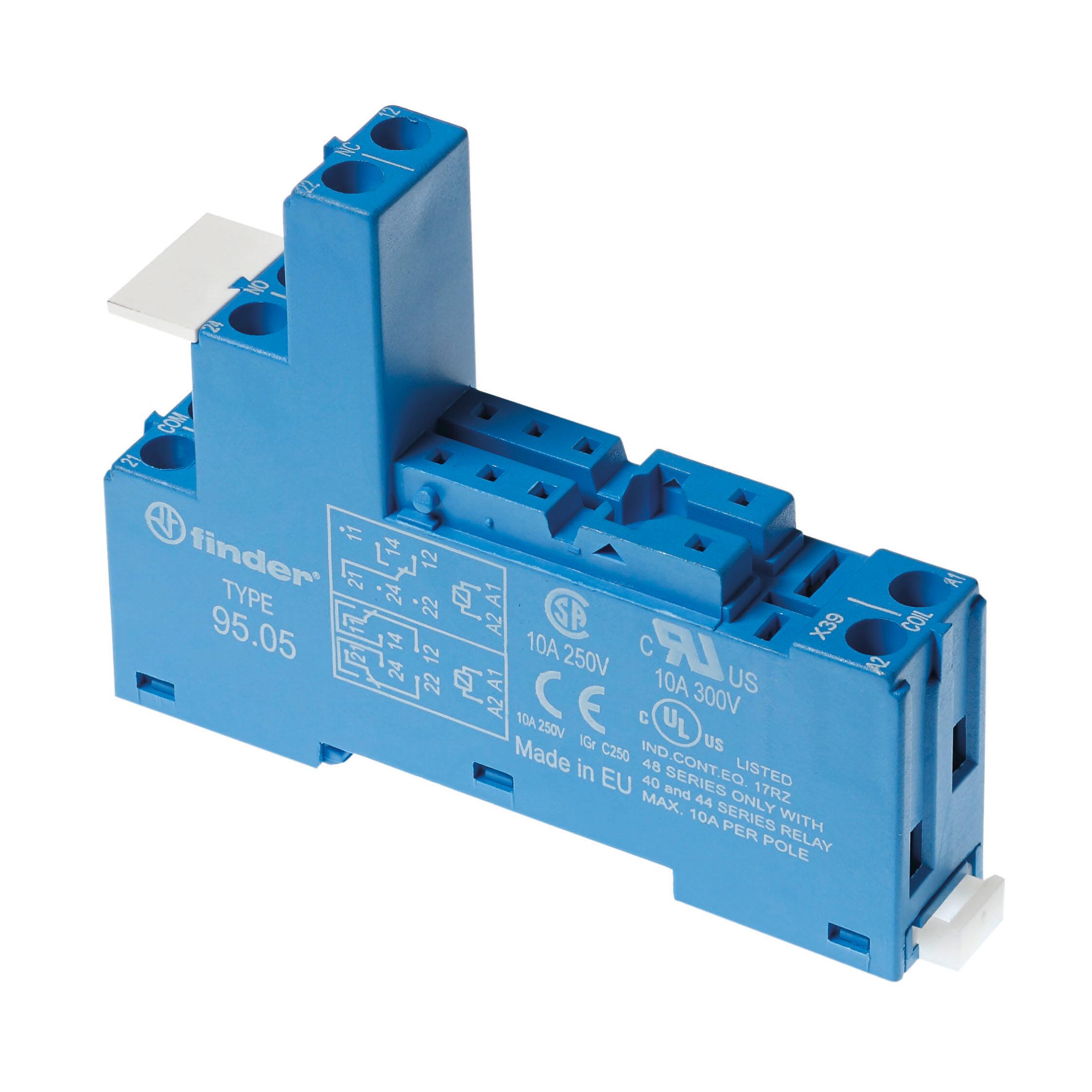 Zoccolo per relè 40.31, con morsetti a bussola montaggio a pannello o su barra 35 mm. Indicato per interfacciamento per PLC