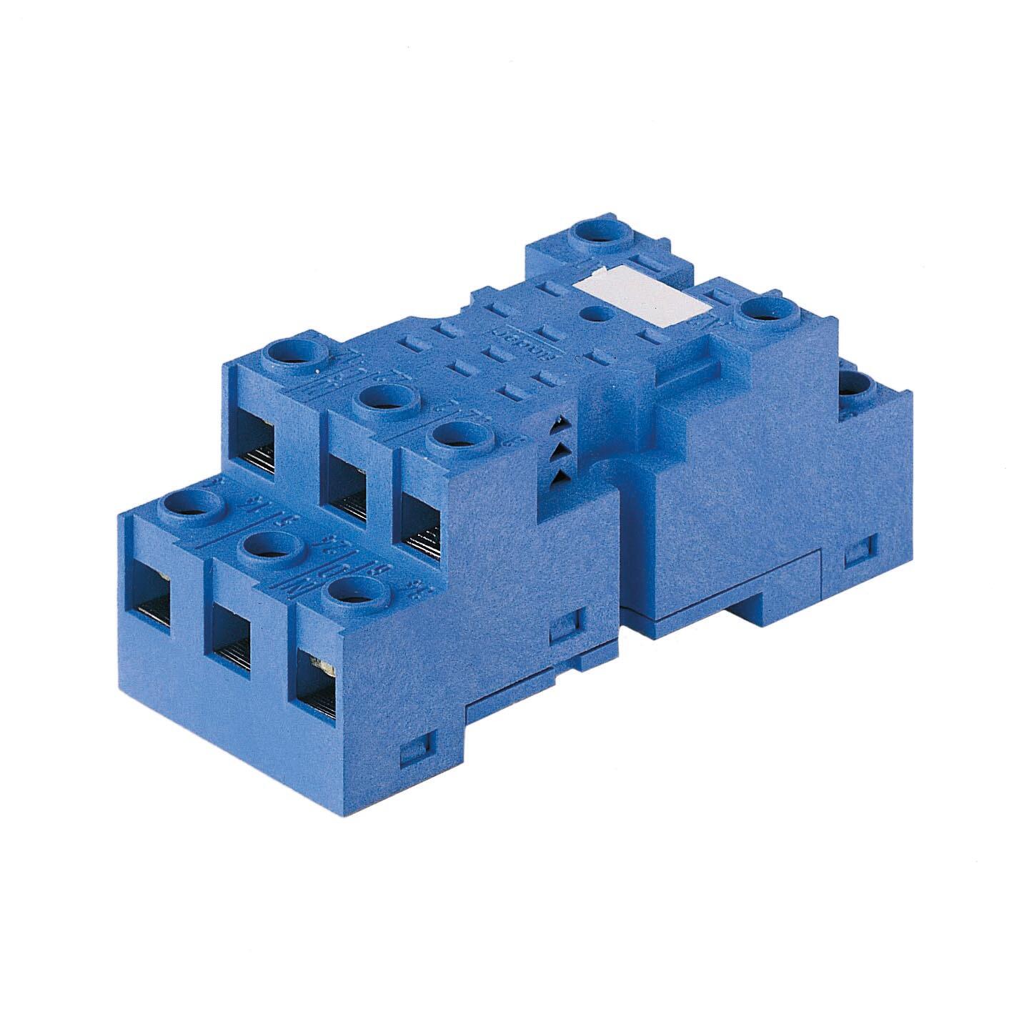 Zoccolo per relè 55.33, con morsetti a bussola montaggio a pannello o su barra 35 mm. Indicato per interfacciamento per PLC