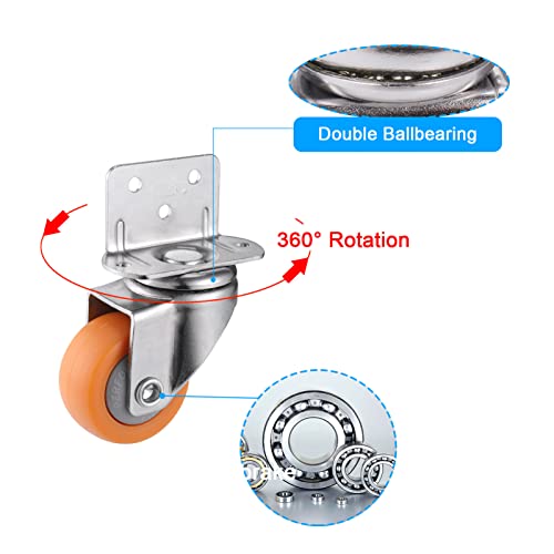 Zocipro 4 Pezzi Ruote per Mobili da 37mm, Rotelle per Mobili per Pallet Durevole con Viti, Ruote Carrello Indossabili a 360 Gradi per Mobili (Arancione)