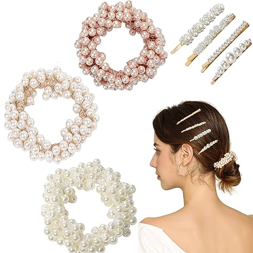 ZOCONE Perle Elastici per Capelli Donna, 7 PCS Scrunchies di Perle Elastico Mollette per Capelli Perle Fermagli Forcina Elegante Pinza Capelli Antiscivolo Accessori Capelli Perla per Ragazze Donna (B)