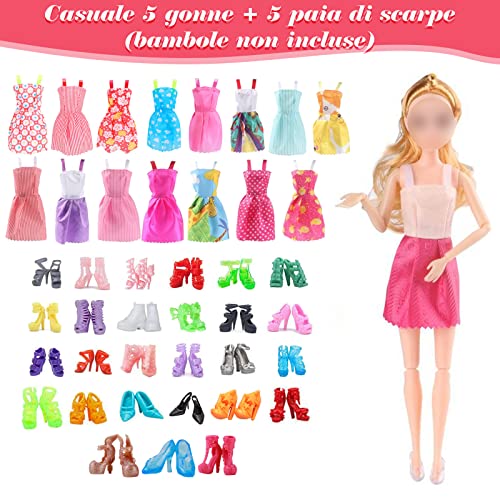 【Bambola Vestiti e Accessori Set】Riceverai 5pz vestito con spalline(stili casuali), 3pz abito in paillettes, 2 set abbigliamento per tutti i giorni(top+pantaloni), 2pz costumi da bagno, 5 paia di scarpe(stili casuali), varietà di stili, può soddisfare tutte le esigenze per cambiare le bambole, il stili viene inviato in modo casuale, offrendoti sorprese più diverse. (Non Include La Bambola, solo abiti, scarpe e accessori.)