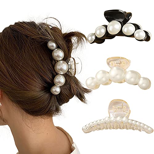 ZOCONE Pinza Capelli Donna Perle Artigli per Capelli, 3 PCS Mollette per Capelli Perle Fermagli Forcina Strass Elegante Pinza Capelli Grandi Acrilica in Metallo e Plastica per Ragazze e Donna (Perla)