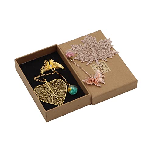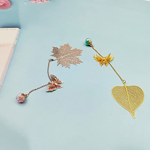 Pacchetto Include: 2 pz segnalibro metallo, due forma di foglia di acero e foglia di bodhi, con fornito con diversi ciondolo a sfera di vetro, con chiare linee di foglie sulla superficie, classiche ed eleganti, Il ciondolo elegante e bello renderà la tua lettura più interessante.