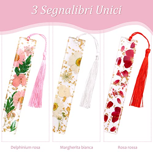 ZOCONE 3 PCS Segnalibro in Resina Fiori Secchi, Segnalibro Resina Epossidica Segnalibri Resina Fiori con Nappe, Lettura Segnalibri per Studenti Ufficio Lettura di Articoli di Cancelleria