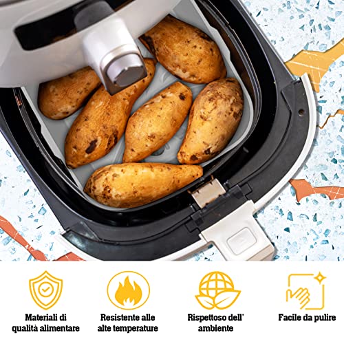 【Mantenere la Pulizia】Il bordo alto 5 cm protegge la friggitrice ad aria da grasso e residui di cibo, senza lasciare residui appiccicosi o bruciati e mantenendo la friggitrice ad aria pulita. Riutilizzabili e facili da pulire, si possono lavare con un panno o con acqua calda e sapone, oppure in lavastoviglie per risparmiare tempo.