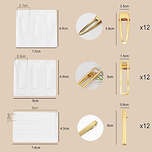 La pacchetto include: 3 serie di stampi a fermagli(striscia lunga, ovale, forma a goccia), 36pz fermagli per capelli oro. Ci sono 3 tipi di stampi e fermagli per capelli per soddisfare al meglio le tue esigenze. Abbastanza quantità e vari stili per te per fermagli per capelli diversi fai-da-te.