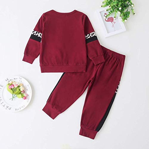 Zoerea Completo Neonato Bambina Moda Manica Lunga Felpa Leopardati + Pantaloni Primavera Autunno Abiti 2 Pezzi Set(Rosso, 2-3 Anni)