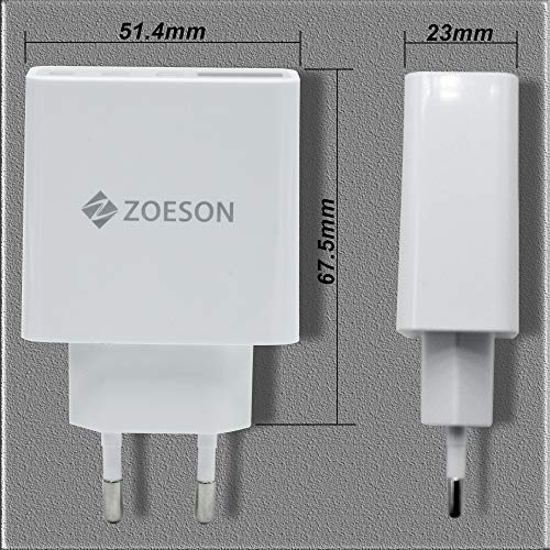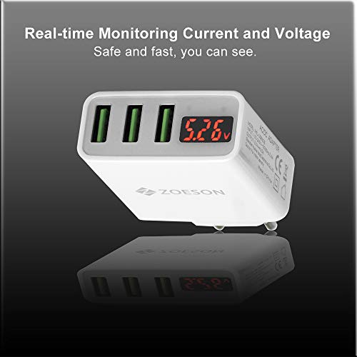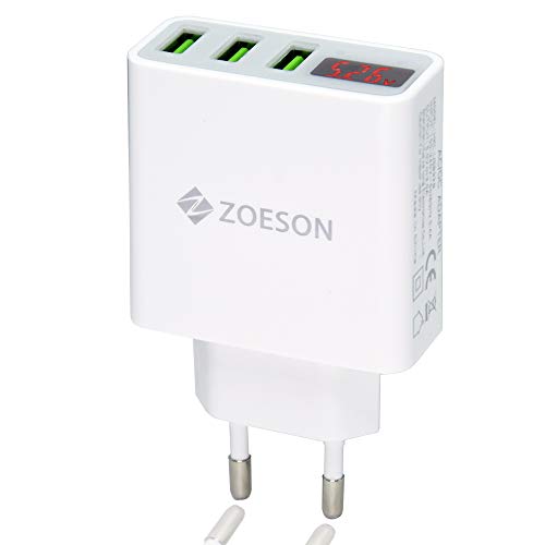 Zoeson Caricatore USB da Muro a 3 Porte (15W, 5V/3A), Display Digitale Corrente e Tensione