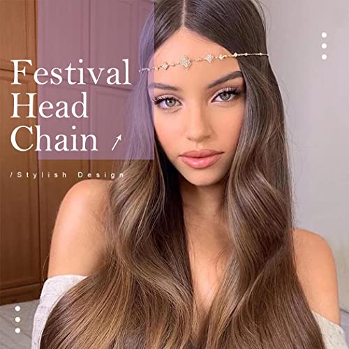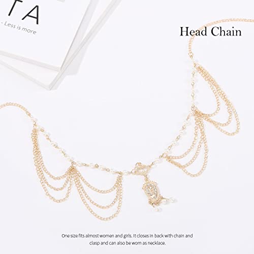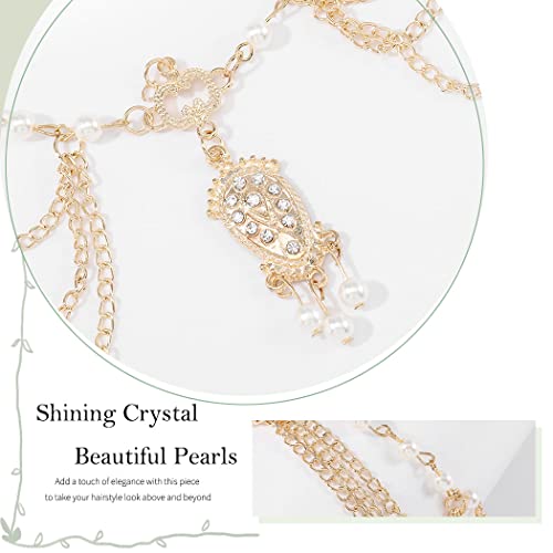 Zoestar Catena per capelli da sposa con perle dorate e cristalli, per donne e ragazze
