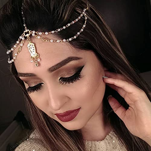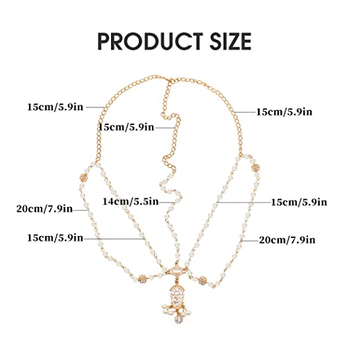 La catena per la testa da sposa è realizzata in lega di alta qualità e perle acriliche finte. Colore oro a scelta.