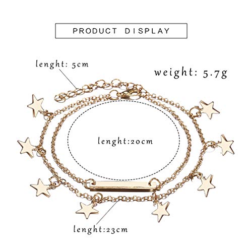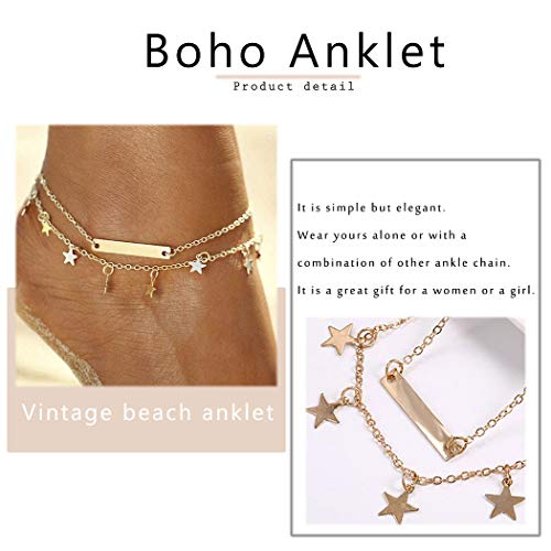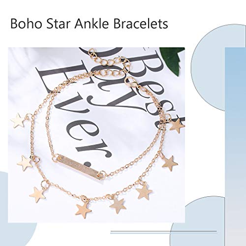 Zoestar - Cavigliera Boho con doppia stella dorata, alla moda, per donne e ragazze