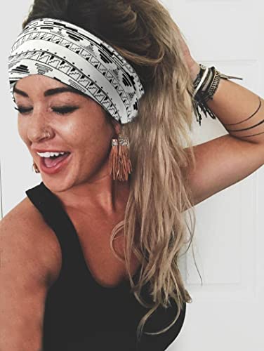 Zoestar Fasce per capelli boho, larghe, per yoga, nero, annodate, con testa a turbante, eleganti e stampate, accessori elastici spessi per donne e ragazze, confezione da 3