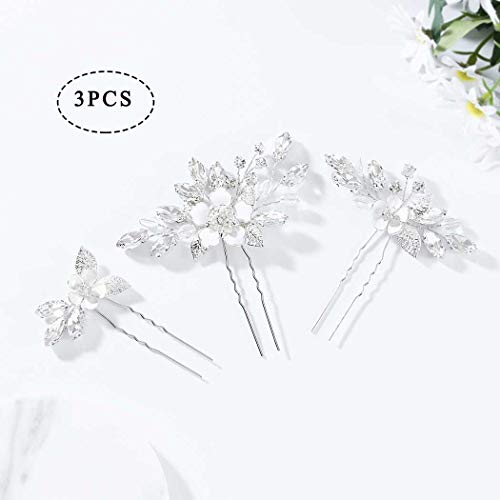 Zoestar - Fermagli per capelli da sposa, con cristalli argentati, accessori per capelli con perline per donne e ragazze (confezione da 3)
