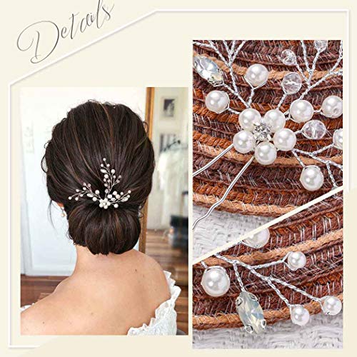 Zoestar, forcine per capelli da sposa con perle color argento e opale con cristalli, accessori per capelli per sposa e damigella d'onore (confezione da 2)