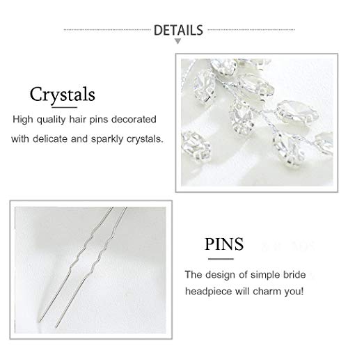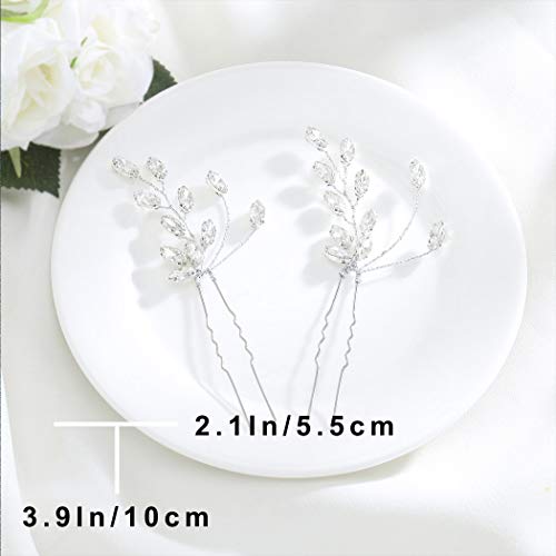 Zoestar, Forcine a forma di fiore per acconciature da sposa con strass e cristalli, accessorio per capelli per donne e ragazze (confezione da 2, colore argento)