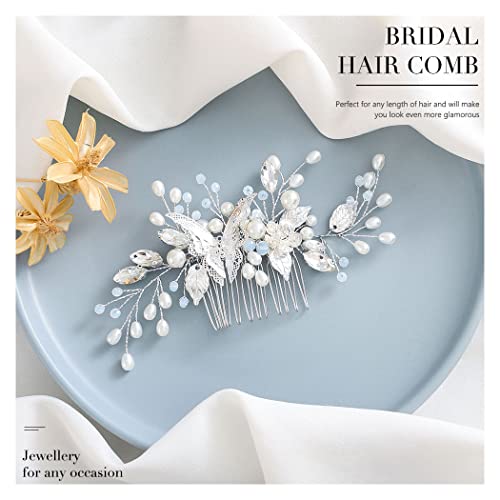 Zoestar Sposa matrimonio farfalla pettini per capelli argento fiore cristallo copricapo nuziale perla strass accessori per capelli per donne e ragazze
