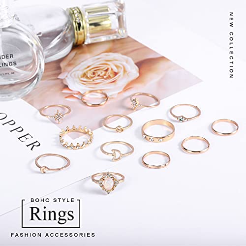 Zoestar Vintage Crystal Gold Finger Rings Star Moon Joint Knuckle Rings Sets Crown Stackable Ring Opal Gioielli di moda per donne e ragazze (confezione da 13)