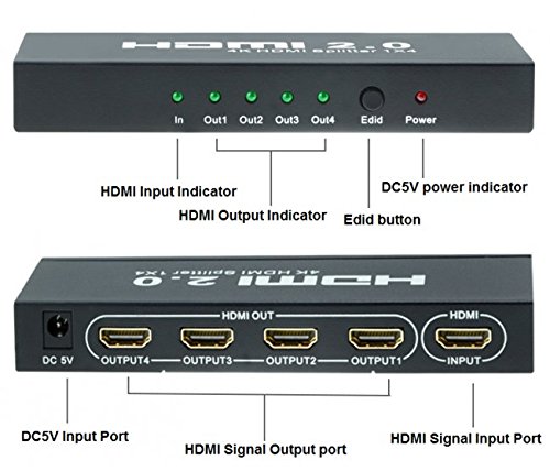 Zoetec, sdoppiatore HDMI 2.0 (4K effettivi, UHD, HDCP 2.2) con 1 ingresso e 4 uscite, ultra HD, supporto EDID, RS232 e HDR, 4K x 2K, per PS4, Virgin TV, box 3D, HDTV, pc, Sky box, Xbox One