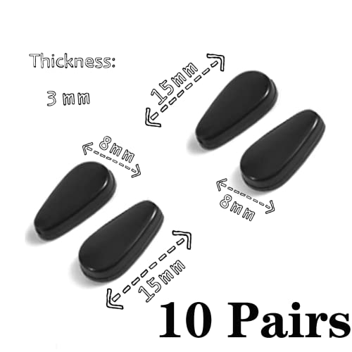 [Pacchetto incluso] 10 paia di naselli in silicone nero. Dimensioni: 14,5 mm × 7,5 mm. Spessore: 3,0 mm