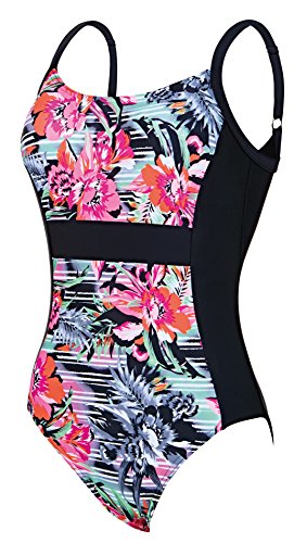 Zoggs Latino Love Pannello Laterale Swimsuit, Donna, Latino Love Side Panel, Black/Multi-Coloured