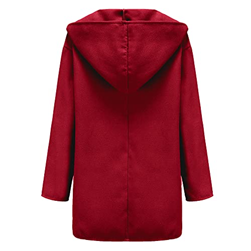 Zolimx Cappotto di Lana Allentato, Cappotto di Lana Invernale con Cappuccio da Donna Maniche a Pipistrello Giacca Tinta Unita Cappotto di Trench Lungo Caldo Cappotto Outwear(A-Rosso,XL)