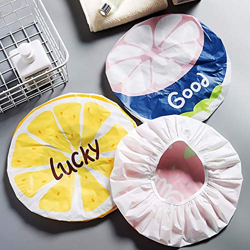❤ ★【Leggero, Portatile e Riutilizzabile】Ogni set di cuffia da bagno in plastica è ben ripiegato in una scatola di carta, leggero e portatile, comodo da riporre e può essere riutilizzato e riciclato. Con diverse cuffia capelli doccia con motivo a frutta multicolore, hai uno stato d'animo diverso. È adatto per il trasporto quando sei in viaggio.