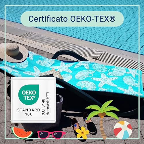DIMENSIONE IDEALE - Con una dimensione di 90x180 cm, il telo in spugna resistente è perfetto come telo da spiaggia, tappetino per il lettino, coperta per la piscina o semplicemente per accoccolarsi con i bambini dopo una nuotata.