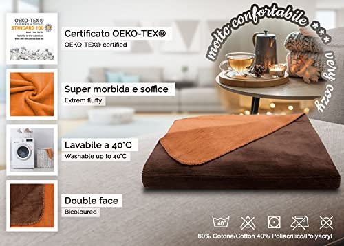 ZOLLNER Coperta da Divano, 150x200 cm, Double Face, Marrone-Arancione Scuro