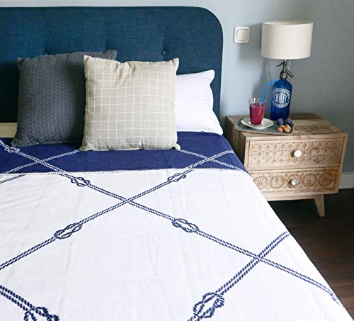 Dai un tocco di stile e modernità alla tua casa con questo pail con una bellissima fantasia a nodi di marinaio double face. Una parte nel colore marino e l'altro bianco.