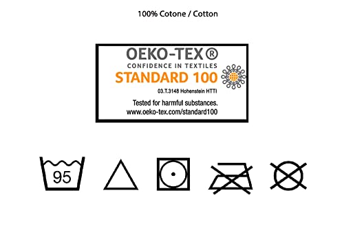 I teli sono in 100% cotone e hanno un peso di ca. 380g/mq. Ovviamente non contengono sostanze tossiche secondo la certificazione Oeko-Tex Standard 100.