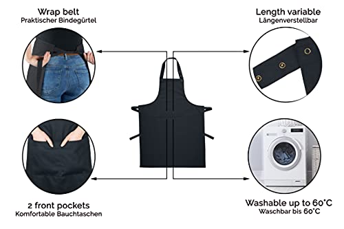 ZOLLNER grembiule da cucina, cotone, misura ca. 75x100 cm, nero, altri colori