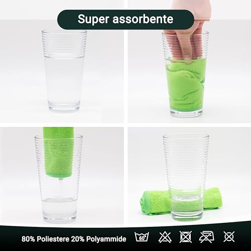 FACILI NELLA CURA- I panni in microfibra vengono solo inumiditi e quindi non necessitano di detergenti chimici - ideali per la cucina, l'auto e il bagno. Quando è il momento di lavare, i versatili panni in fibra fine possono essere lavati a 60°C.