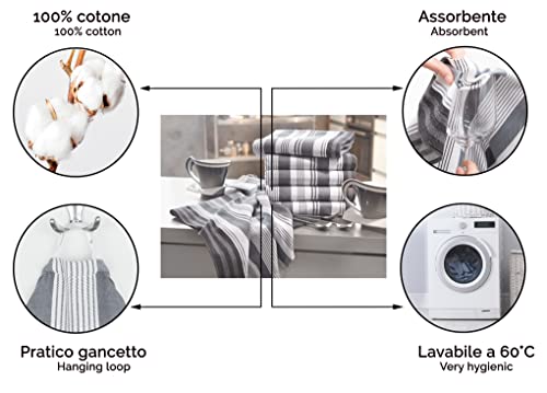 ZOLLNER 4 Strofinacci 100% Cotone, 50x70 cm, a Righe Grigie
