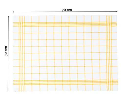 ZOLLNER 5 strofinacci cucina, 100% cotone, 50x70 cm, bianchi a quadretti gialli