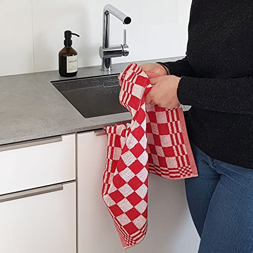 ZOLLNER 4 strofinacci da cucina, 100% cotone spugna, 50x50 cm, rossi-bianchi