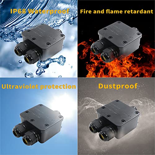 Zolunu Scatola di giunzione esterna a 3 vie, IP68 impermeabile scatola di giunzione nero connettore cavo esterno adatto per luci esterne, illuminazione del paesaggio (3 vie)