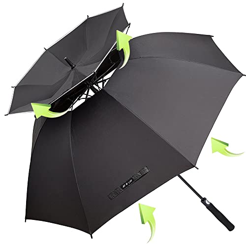 ZOMAKE Grande Ombrello, Ombrello Antivento per 2 Persone, Design Automatico, 210T Tessuto, Fibra di Vetro Portaombrelli (Nero)