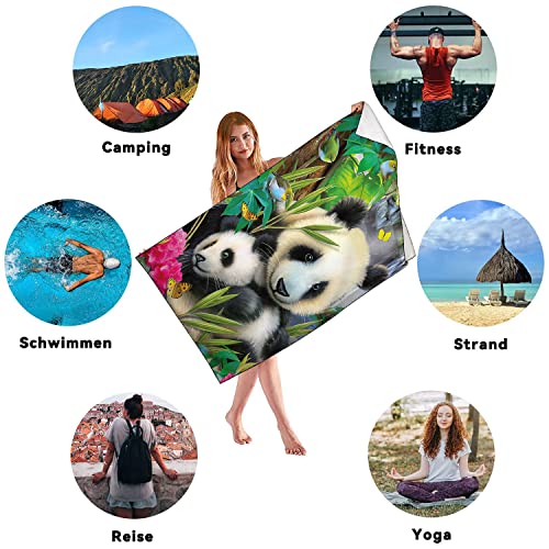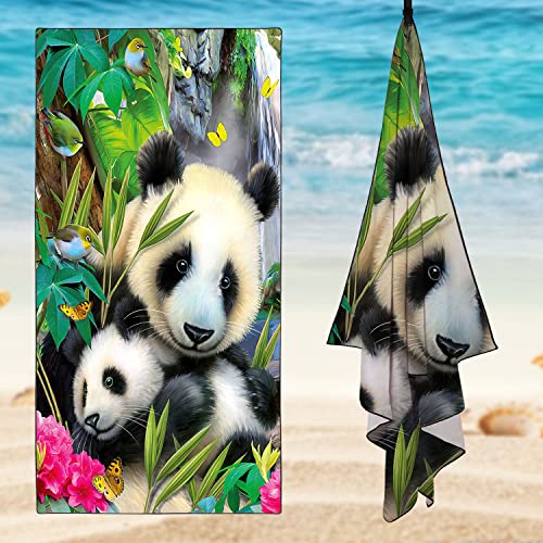 Zomer Telo mare grande 90 x 180 cm ad asciugatura rapida in microfibra stampata con panda genitori e bambini