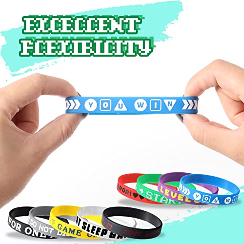 9 Stili: il pacchetto viene fornito con 36 pezzi di braccialetti per videogiochi in 9 colori con 9 stili, 4 pezzi per stile, sono stampati con motivi a tema per videogiochi, tra cui auto, gamepad, cuori e altro, pieni di sensazioni di gioco, la quantità è sufficiente per soddisfare le vostre esigenze e sostituzioni