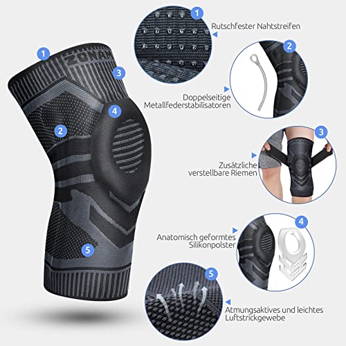 ZONAMA Ginocchiera per uomo e donna, Menisco, con cuscinetti in gel Patella, stabilizzatori laterali e chiusura in velcro, per la corsa, il menisco, l'artrite, colore nero