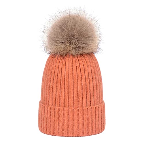 ZONEWD Bobble - Cappello da donna, in pile, invernale, foderato, cappelli termici, lavorati a maglia, con pon pon, arancione, bambini, Arancione, XL/XXL