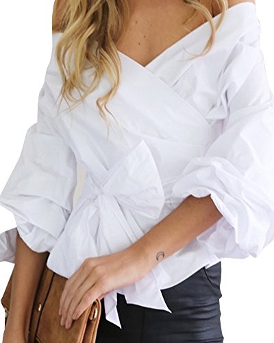 ZongSen Donna Maglietta Camicetta Casual Ufficio Elegante Cotone Scollatura Senza Spalline Bianco M
