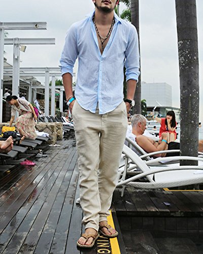 Uomo Sottile Camicie Maniche Lunghe Causal Slim Fit Shirts Da Spiaggia